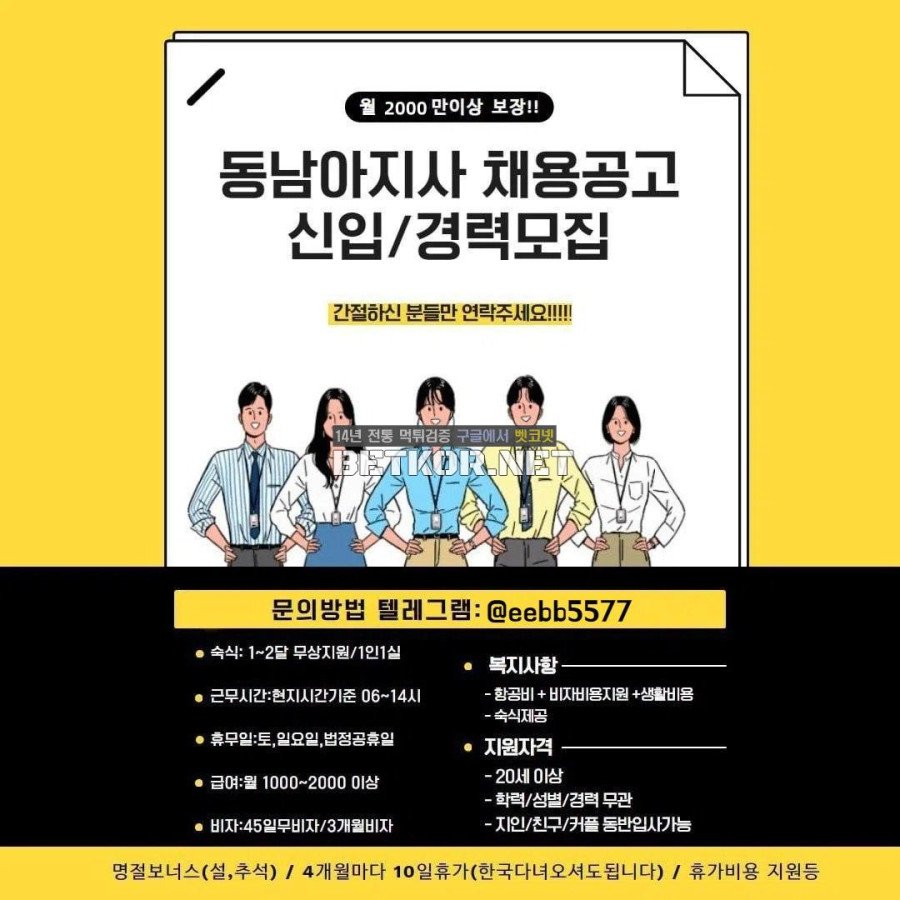 해외 (동남아) 남여 직원 모집 합니다.